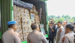 Kapolda Jateng Irjen Pol Ribut Hari Wibowo saat mengecek bantuan logistik yang akan dikirim di Sumatra dan Aceh. (Foto:Andi Saputra/Harian7.com)