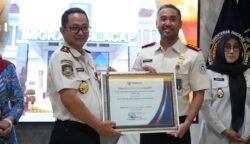 Kepala Kantor Imigrasi Cilacap, Ryo Achdar menerima penghargaan penilaian Kualitas Pelayanan Kantor Imigrasi pada Opini Tahun 2025 dari Kakanwil Direktorat Jenderal Imigrasi Jateng, Haryono Agus Setiawan (istimewa)