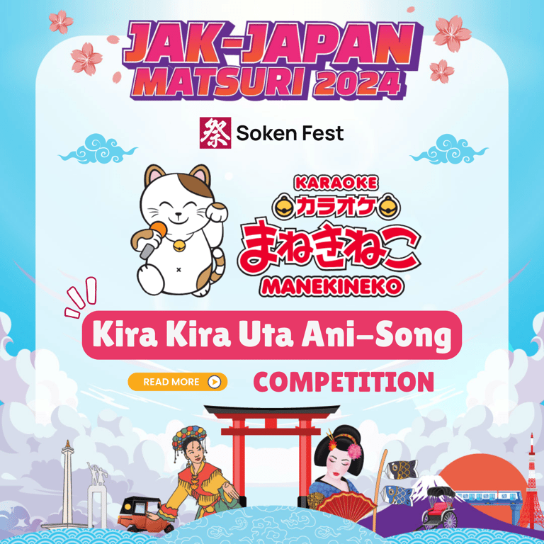 Dalam rangka memperingati dan merayakan budaya pop Jepang di Indonesia, Karaoke Manekineko dengan bangga mengumumkan event spektakuler bertajuk Kira Kira Uta Ani Song. Event ini merupakan hasil kolaborasi antara Karaoke Manekineko, Jak Japan Matsuri, dan Soken Fest, yang menghadirkan kompetisi Karaoke Battle Anime Song sebagai salah satu highlight utama di Jak Japan Matsuri 2024, festival budaya Jepang terbesar di Jakarta.