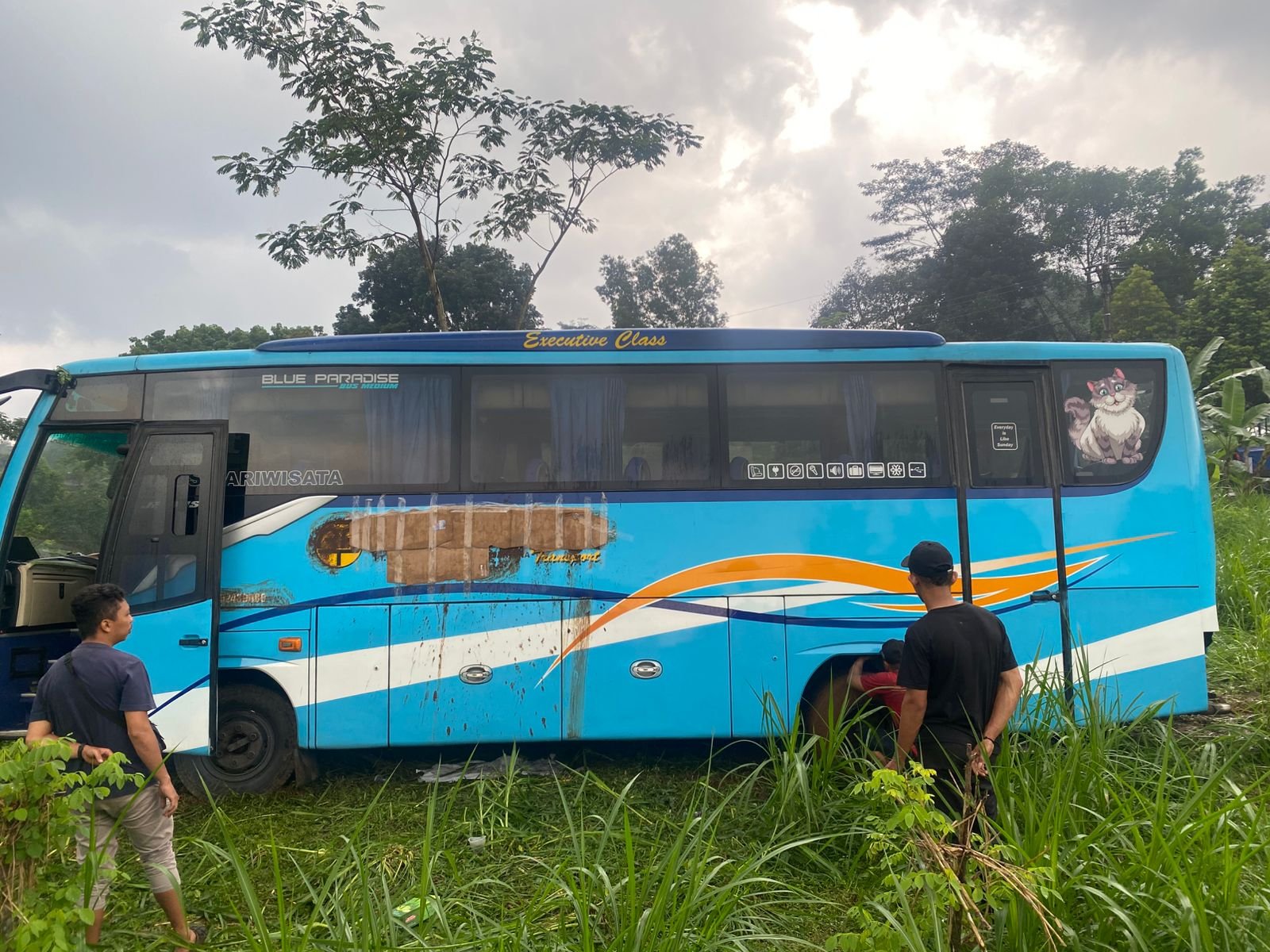 Bus Pariwisata Diduga Rem Blong, Masuk Kebun di Salatiga, Dua Penumpang Luka Dilarikan ke RSUD
