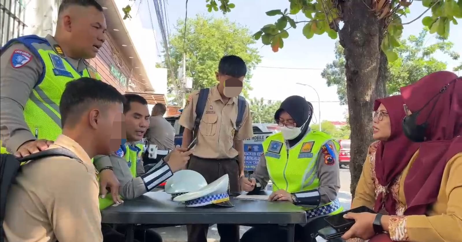 Mendapati temuan tersebut, petugas tidak serta-merta memberikan surat tilang. Sebaliknya, petugas meminta kedua siswa itu menghubungi pihak sekolah agar dijemput langsung. Tak berselang lama, dua guru masing-masing dari bagian kesiswaan dan guru BK dari sekolah yang bersangkutan datang ke lokasi.