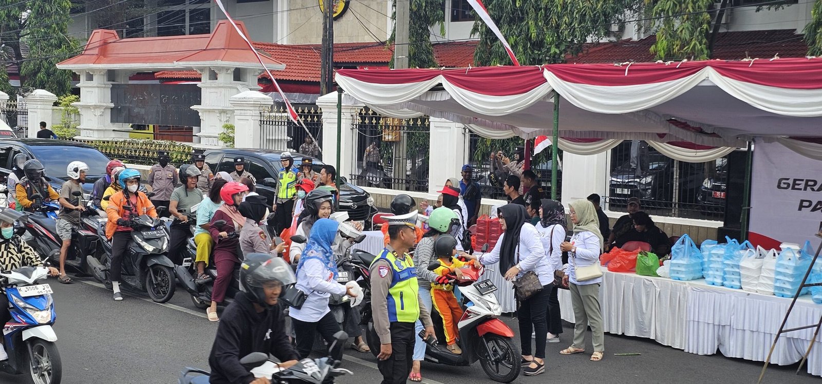 Dalam pantauan, ratusan warga tampak antusias menerima nasi bungkus. Suasana berlangsung akrab, tanpa gesekan, dan tetap tertib. Sejumlah petugas berjaga di titik strategis, termasuk jalur lalu lintas yang berpotensi padat.