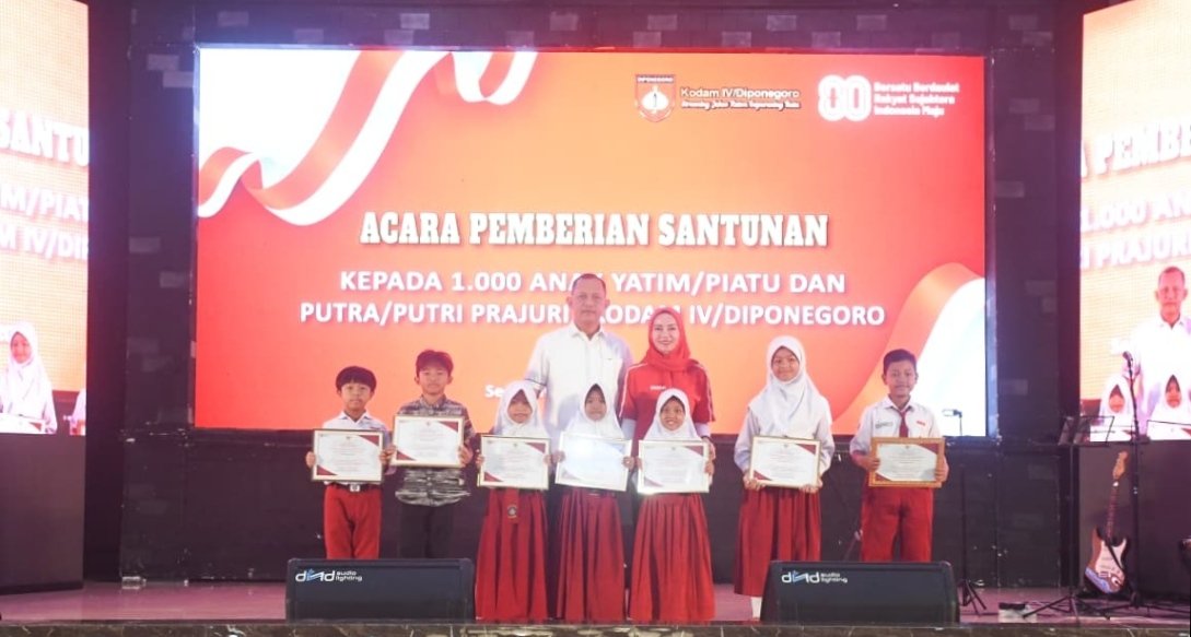 Peduli Kaum Dhu’afa, Pangdam IV/Diponegoro Santuni 1.000 Anak Yatim Piatu di HUT ke-80 RI