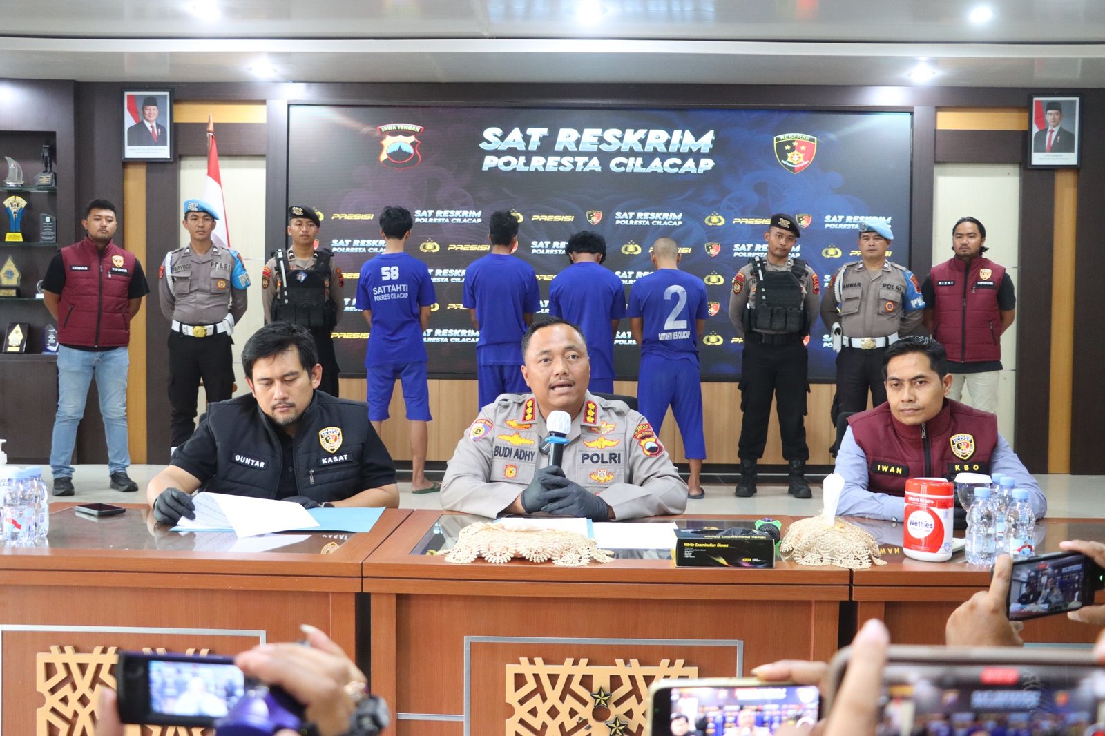 “Tersangka yang telah ditetapkan yakni BA (19) berperan mengambil tong sampah, AA (19) merusak kendaraan backbone Polsek Jeruklegi, BG (19) membakar sofa serta melempari Gedung DPRD dengan batu, dan T (26) yang membakar korden serta busa sofa di rumah sekitar DPRD Cilacap, dan 8 tersangka lainnya masih berstatus di bawah umur,” jelas Kombes Pol Budi Adhy Buono, S.H., S.I.K., M.H.