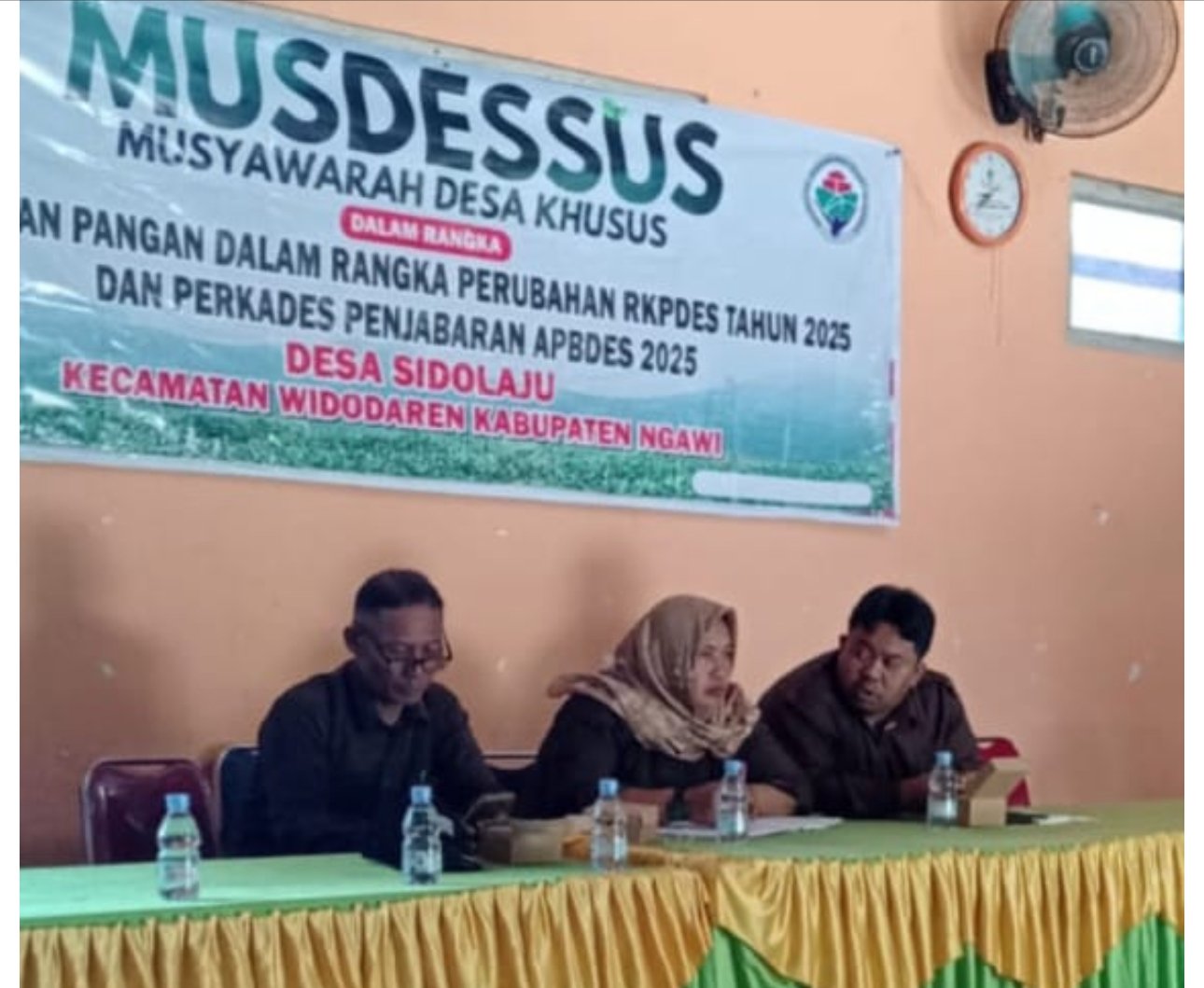 NGAWI | HARIAN7.COM – Pemerintah Desa Sidolaju, Kecamatan Widodaren, Kabupaten Ngawi, Jawa Timur, menggelar Musyawarah Desa Khusus (Musdesus) pada Senin (1/9/2025) di Balai Desa Sidolaju. Agenda utama forum ini adalah pembentukan Koperasi Merah Putih (KMP), menindaklanjuti surat perintah Bupati Ngawi terkait percepatan pendirian koperasi desa.