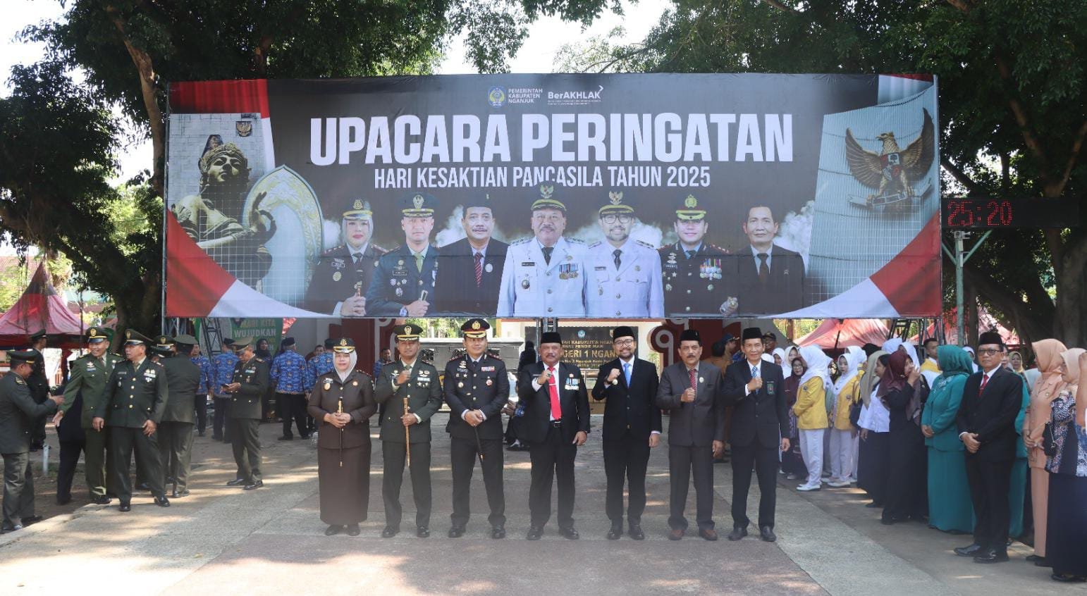 NGANJUK | HARIAN7.COM – Kapolres Nganjuk, AKBP Henri Noveri Santoso, S.H., S.I.K., M.M. menghadiri upacara peringatan Hari Kesaktian Pancasila di Alun-alun Nganjuk bersama Forkopimda Kabupaten Nganjuk serta undangan dari berbagai stakeholder, Rabu (01/10/2025).