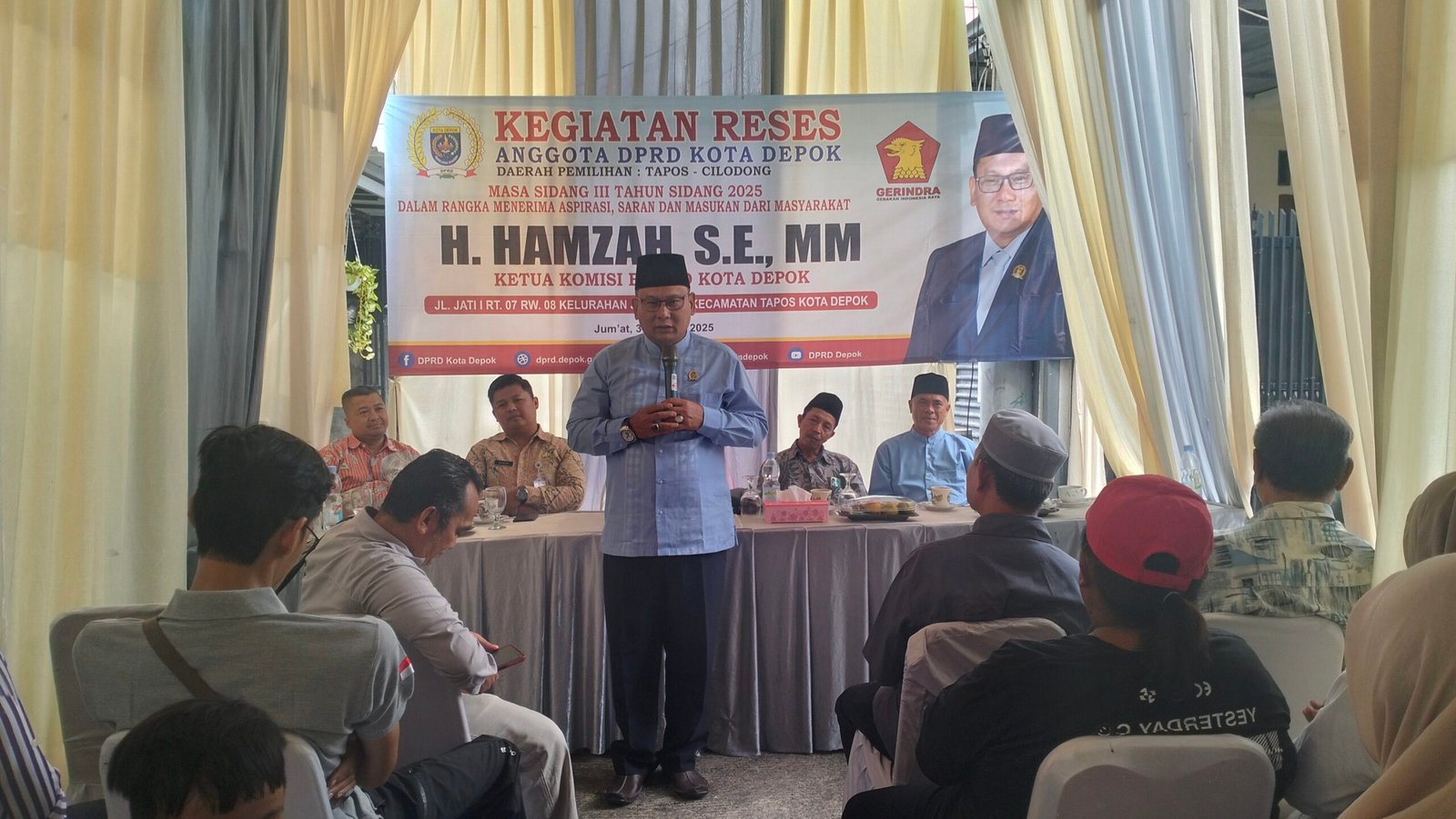 DEPOK | HARIAN7.COM – Reses di Jalan Jati 1 RT 007 RW 008 Kelurahan Jatijajar Kecamatan Tapos Ketua Komisi B Hamzah memaparkan beberapa program unggulan Wali Kota serta rencana kerja untuk di tahun depan.