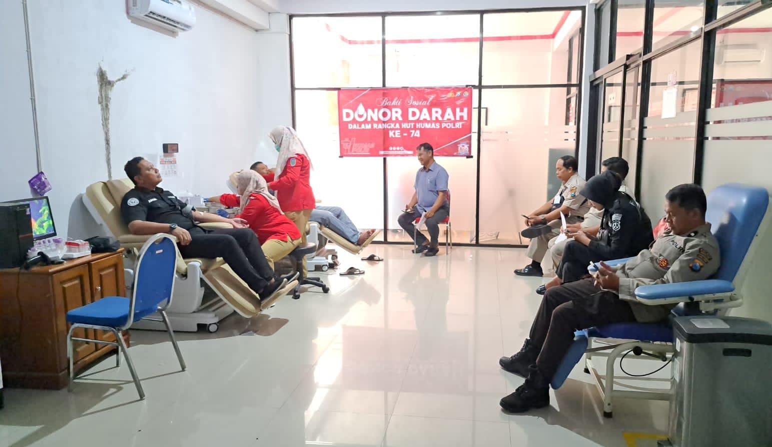 Sambut HUT Humas Polri ke-74, Si Humas Polres Nganjuk Gelar Donor Darah Bersama Wartawan dan Masyarakat