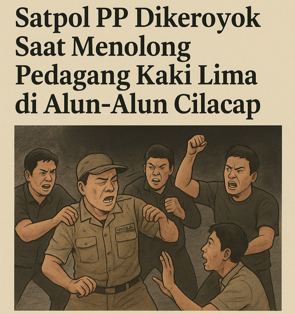 Satpol PP Dikeroyok Saat Menolong Pedagang Kaki Lima di Alun-Alun Cilacap