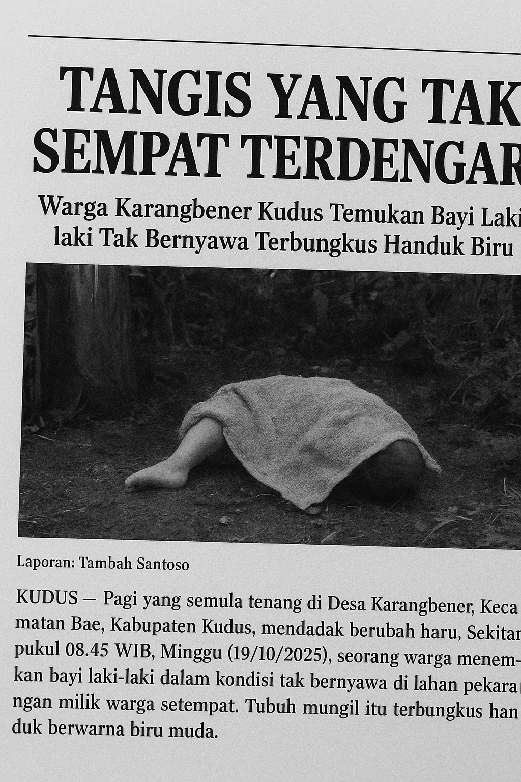 Tangis yang Tak Sempat Terdengar, Warga Karangbener Kudus Temukan Bayi Laki-laki Tak Bernyawa Terbungkus Handuk Biru