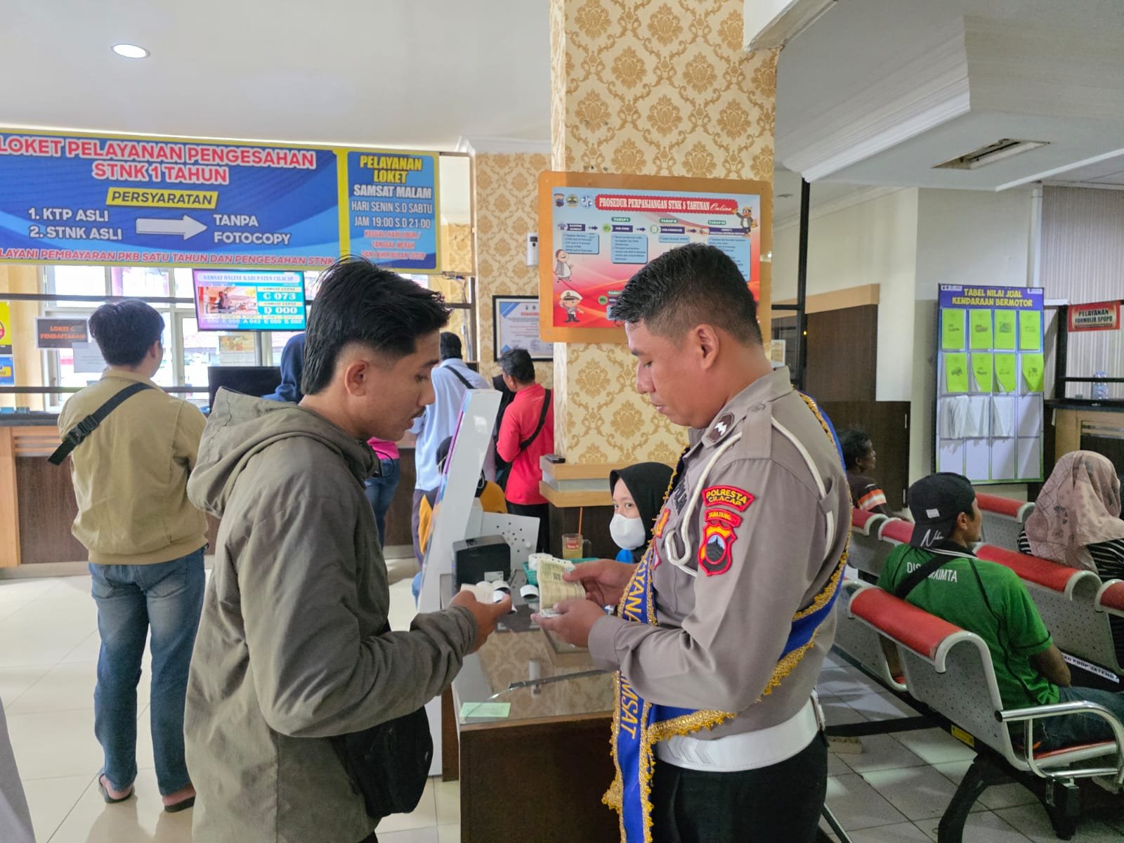 CILACAP | HARIAN7. COM – Aipda Sugiantoro, anggota Samsat kota Satlantas Polresta Cilacap, memberikan penjelasan terkait mekanisme pembayaran pajak kepada masyarakat, Senin, (10/11/2025). Penjelasan ini diberikan untuk meningkatkan kesadaran dan pemahaman masyarakat tentang cara membayar pajak yang benar.