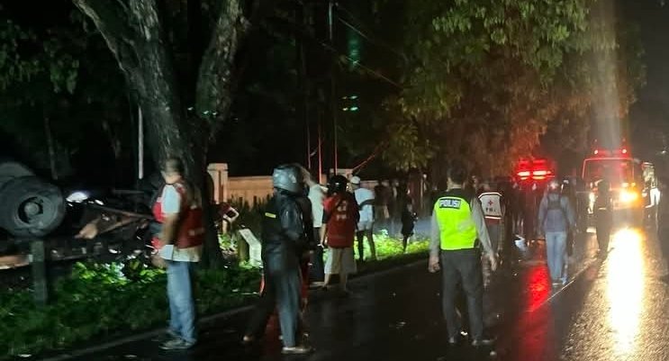 “Sampai di depan perempatan, sopir memilih banting setir ke kiri, menabrak pagar dan pepohonan di area TPU Ngemplak. Truk terguling dan sempat mengeluarkan api,” kata Intan pengendara lain.