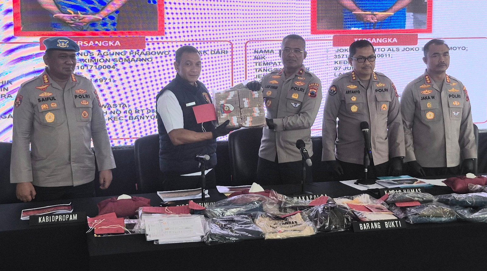 “Barang bukti yang diamankan antara lain sejumlah dokumen pernyataan, bukti transfer antar rekening, uang tunai Rp600 juta, serta dua unit telepon genggam. Para tersangka dijerat dengan Pasal 378 KUHP tentang Penipuan dan Pasal 372 KUHP tentang Penggelapan dengan ancaman pidana maksimal empat tahun penjara,” pungkasnya.