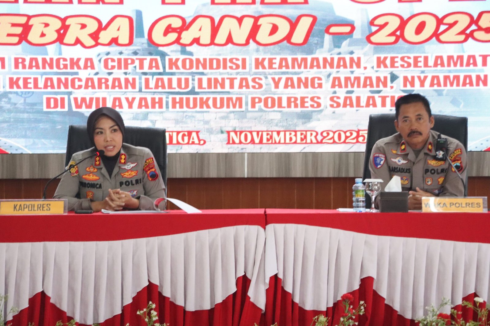 SALATIGA | HARIAN7.COM – Menjelang pelaksanaan Operasi Zebra Candi 2025, Kepolisian Resor Salatiga menggelar Latihan Pra Operasi (Latpraops) di Pendopo Widya Qasana Tribarata, Kamis (13/11/2025). Kegiatan dipimpin langsung Kapolres Salatiga AKBP Veronica, S.H., S.I.K., M.Si., didampingi Wakapolres Kompol R. Arsadi K.S., S.E., M.H., dan diikuti seluruh personel yang terlibat dalam operasi.