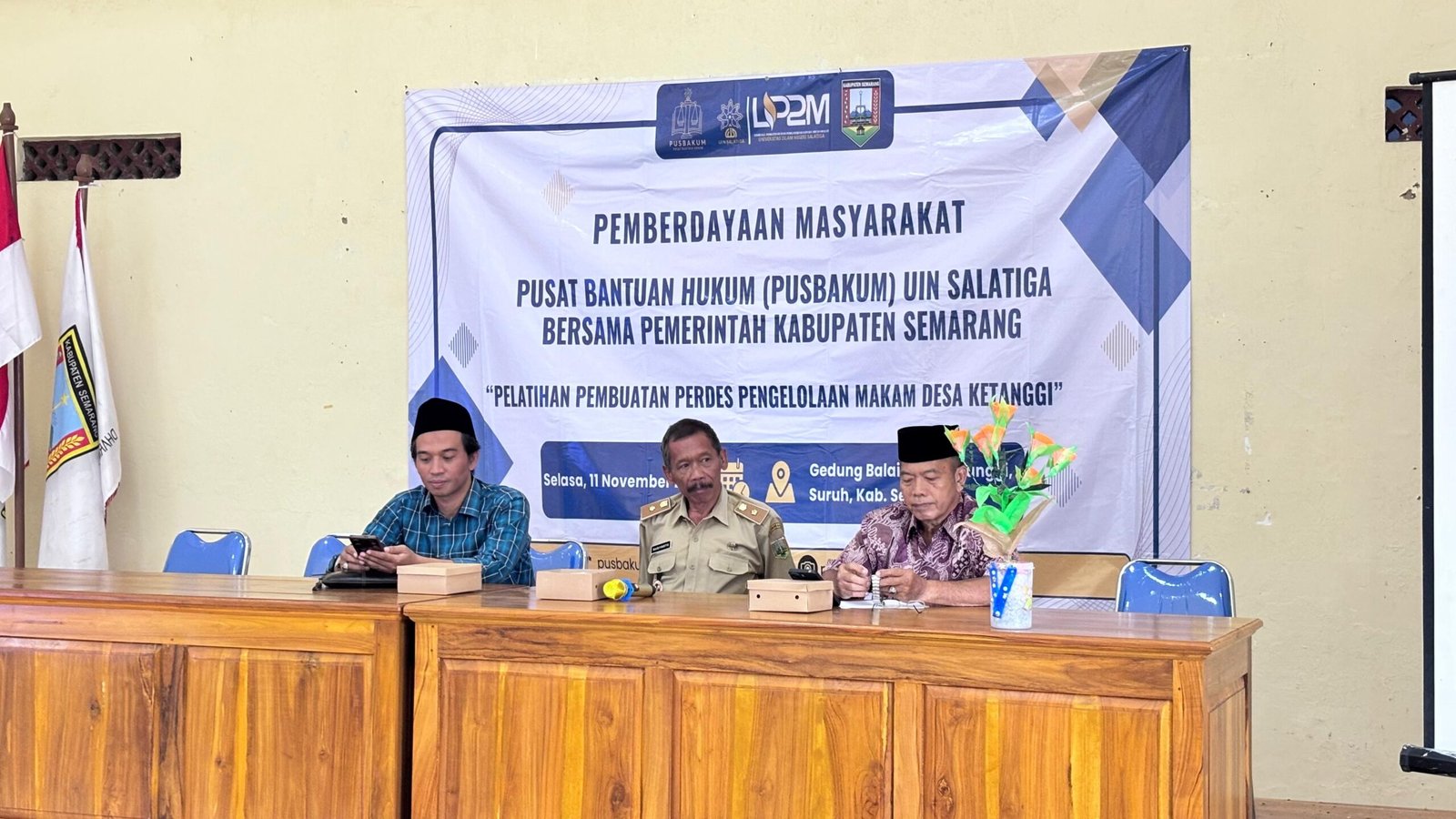 KAB.SEMARANG | HARIAN7.COM – Di balai desa yang sederhana namun penuh semangat, Selasa (11/11), sekelompok warga dan perangkat Desa Ketanggi, Kecamatan Suruh, duduk rapi mendengarkan paparan tentang bagaimana membuat peraturan desa yang baik. Pusat Bantuan Hukum (PUSBAKUM) UIN Salatiga menjadi narasumbernya. Tema pelatihan kali ini: Pembuatan Peraturan Desa tentang Pengelolaan Makam.