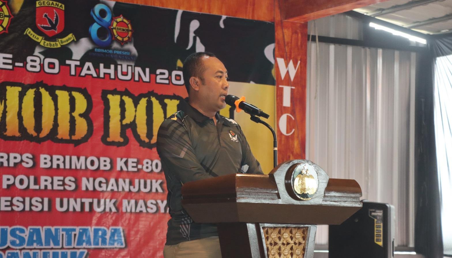 Wakapolres Nganjuk, KOMPOL Andria Diana Putra, S.E., M.H., yang hadir mewakili Kapolres Nganjuk menyampaikan, bahwa perjalanan panjang dan eksistensi Korps Brimob Polri telah menjadi bagian penting dari sejarah bangsa Indonesia.