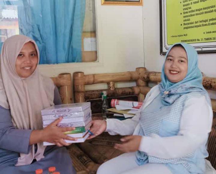 Ia bersama Siti Muzaidah, bendahara TBM, menyalurkan total enam puluh satu eksemplar Al-Qur’an kepada para penerima.