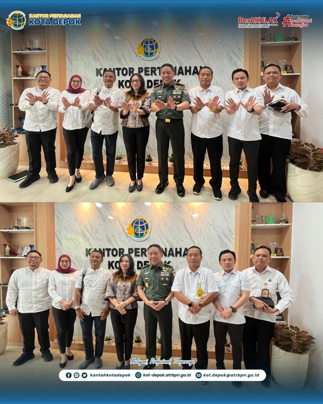 Pertemuan yang berlangsung hangat di ruang rapat Kantor Pertanahan Kota Depok ini bertujuan untuk memperkuat hubungan antara TNI dan Kantor ATR/BPN dalam rangka mencapai tujuan bersama. Sinergi antara kedua lembaga ini dinilai penting untuk mendukung program pemerintah dalam menciptakan Indonesia yang lebih adil, aman, dan sejahtera.
