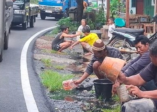 Dari pantauan di lokasi, warga tampak berhamburan membawa botol air mineral, ember, hingga jeriken kecil. Mereka jongkok di tepi jalan, menyendok cairan berwarna kekuningan dari genangan lumpur bercampur bahan bakar. “Iya, tadi ada beberapa warga (yang mengambil solar),” kata Melinda, warga sekitar yang menyaksikan langsung kejadian itu.