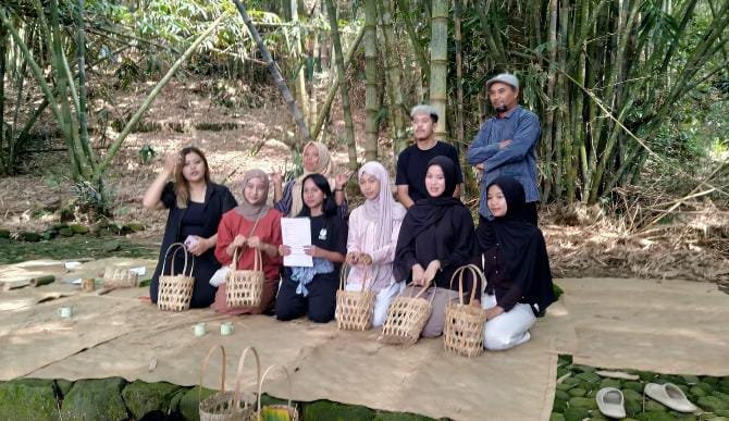 Bagian yang paling dinanti adalah workshop membuat tas anyaman bambu. Di bawah rindangnya rumpun bambu, peserta belajar teknik dasar menganyam bersama pengrajin. Selama proses, pengrajin menjelaskan asal-usul bambu, fungsi bambu sebelum dipanen, masa panen ideal, serta jenis bambu yang umum dipakai untuk kerajinan.