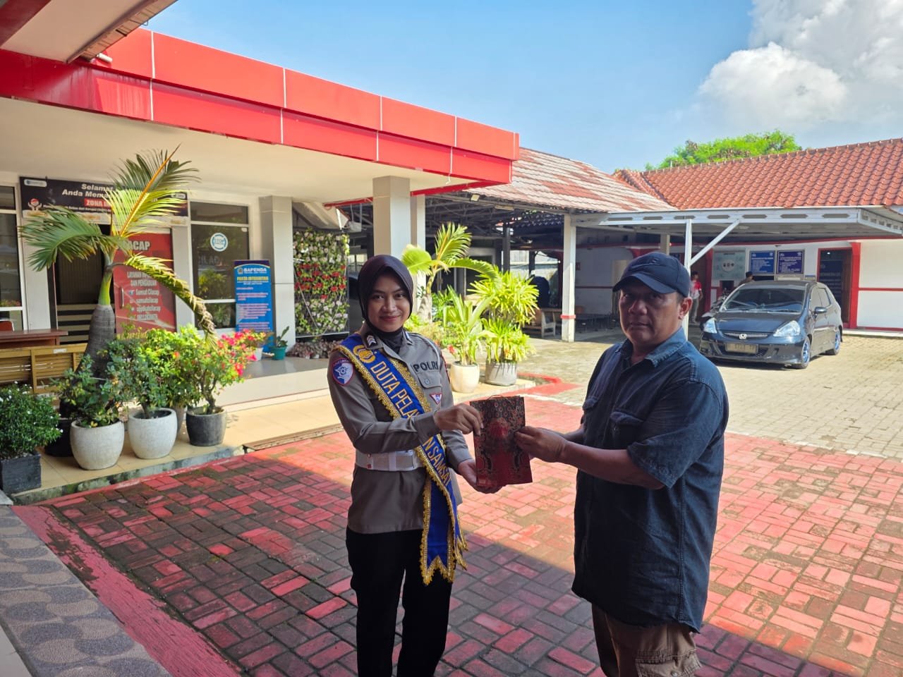 Unit STNK Sat Lantas Polresta Cilacap Berikan Santunan kepada Masyarakat Sekitar Kantor Samsat Cilacap