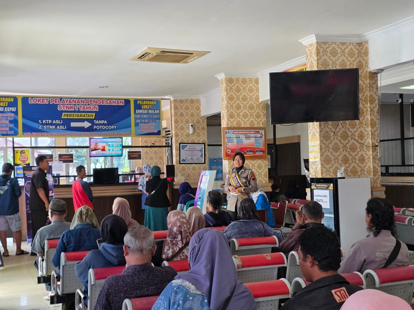 Sosialisasi ini dihadiri oleh masyarakat yang ingin mengetahui lebih lanjut tentang persyaratan pajak dan proses administrasi kendaraan bermotor.