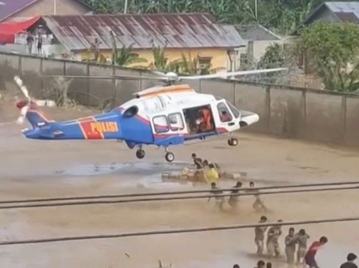 Minimnya lokasi pendaratan helikopter menjadi tantangan utama. Genangan air banjir bandang masih menutupi sebagian besar daratan, mengubah kawasan terbuka menjadi arus air deras yang tak dapat diprediksi.