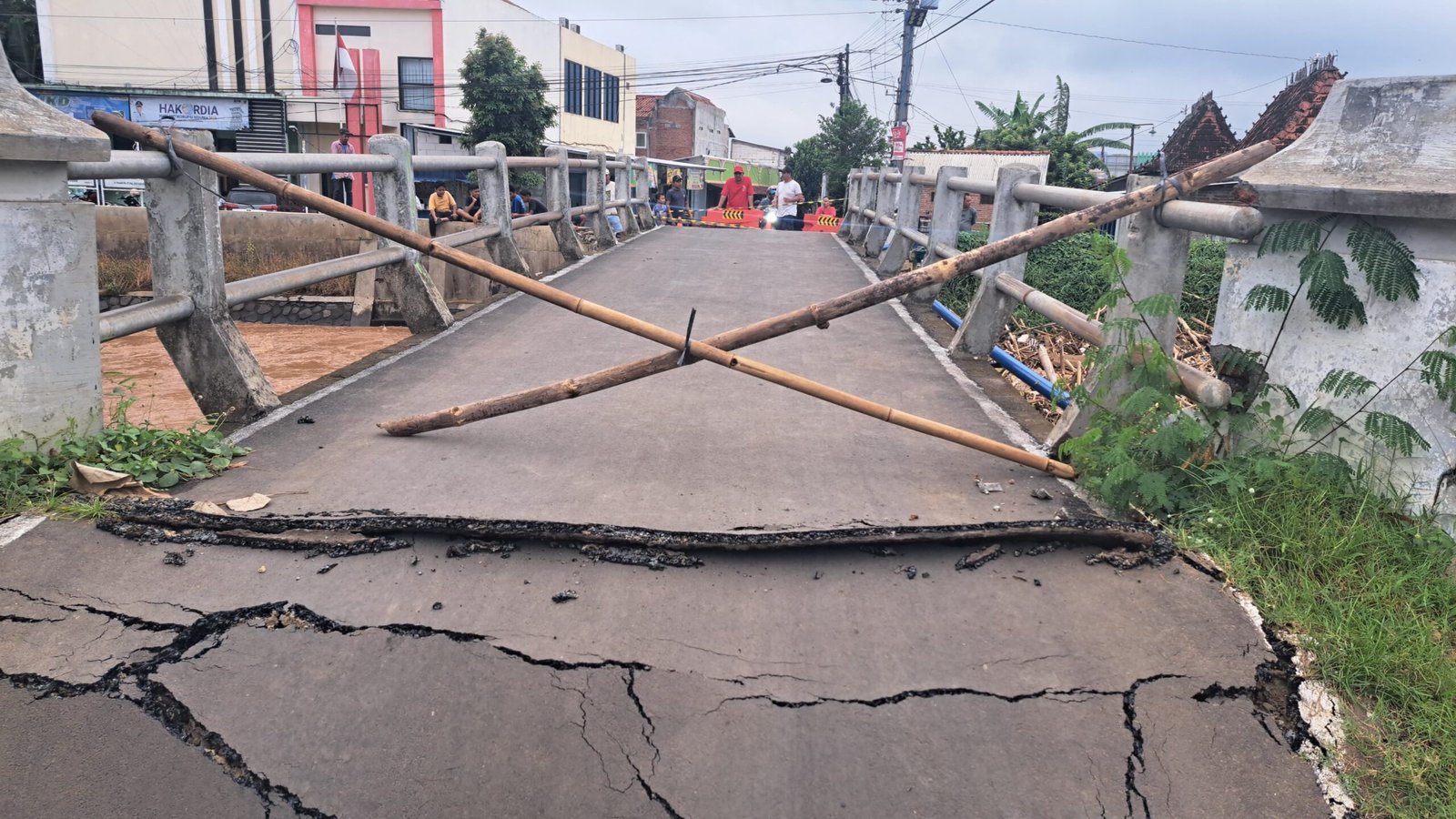 Untuk sementara, akses jembatan ditutup menggunakan bentangan kayu agar tidak dilalui kendaraan maupun pejalan kaki. Masri memastikan mobilitas warga tetap berjalan karena masih tersedia jalur alternatif.