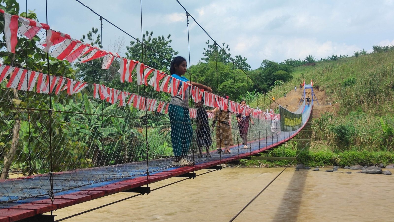 Suasana meriah tampak dari antusiasme warga. Anak-anak, pelajar, hingga para petani menyambut peresmian ini dengan penuh kegembiraan karena jembatan tersebut menjadi fasilitas penting yang telah lama mereka nantikan.