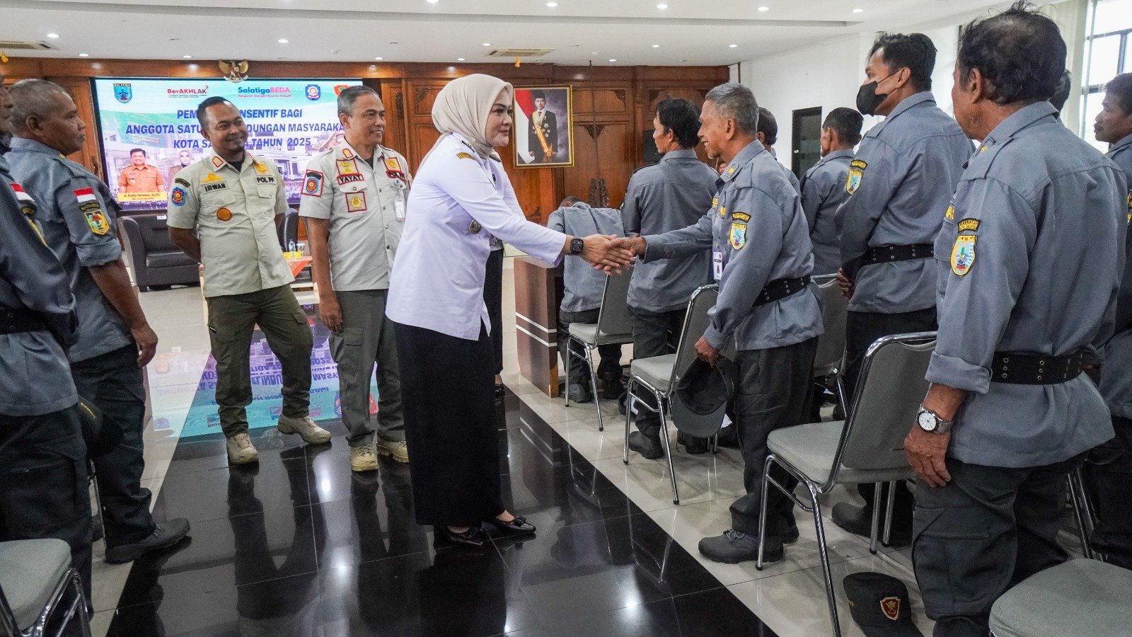 SALATIGA | HARIAN7.COM – Di tengah persiapan Kota Salatiga menyambut periode Natal dan Tahun Baru (Nataru), Wakil Wali Kota Nina Agustin memberikan apresiasi kepada Satuan Perlindungan Masyarakat (Satlinmas) sebagai pasukan terdepan dalam menjaga keamanan dan ketertiban. Bertempat di Ruang Kaloka Lantai 4 Gedung Sekretariat Daerah, Rabu (03/12/2025), Nina menyerahkan dana insentif sekaligus mengumumkan rencana pemberian perlindungan jaminan sosial bagi anggota Satlinmas. Pada tahap penyaluran ini, insentif diberikan kepada anggota dari Kecamatan Tingkir dan Argomulyo.