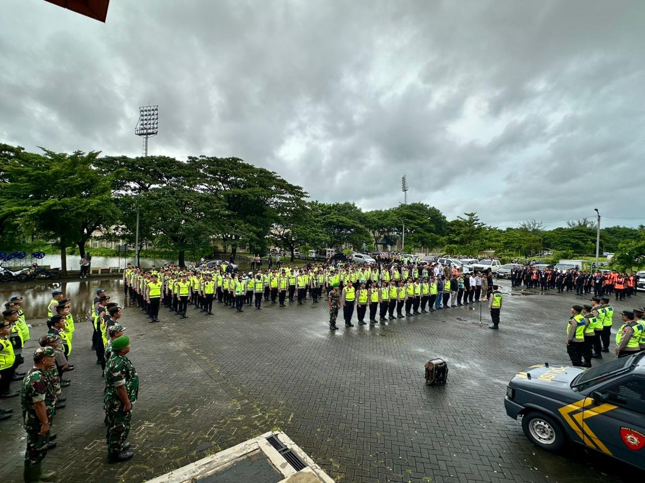 Personel pengamanan berasal dari unsur Polri, TNI, Dinas Perhubungan, Satpol PP, steward, panitia pelaksana, hingga tenaga medis. Mereka disebar dalam tiga ring pengamanan, mencakup area dalam stadion, pintu masuk, hingga kawasan luar stadion.