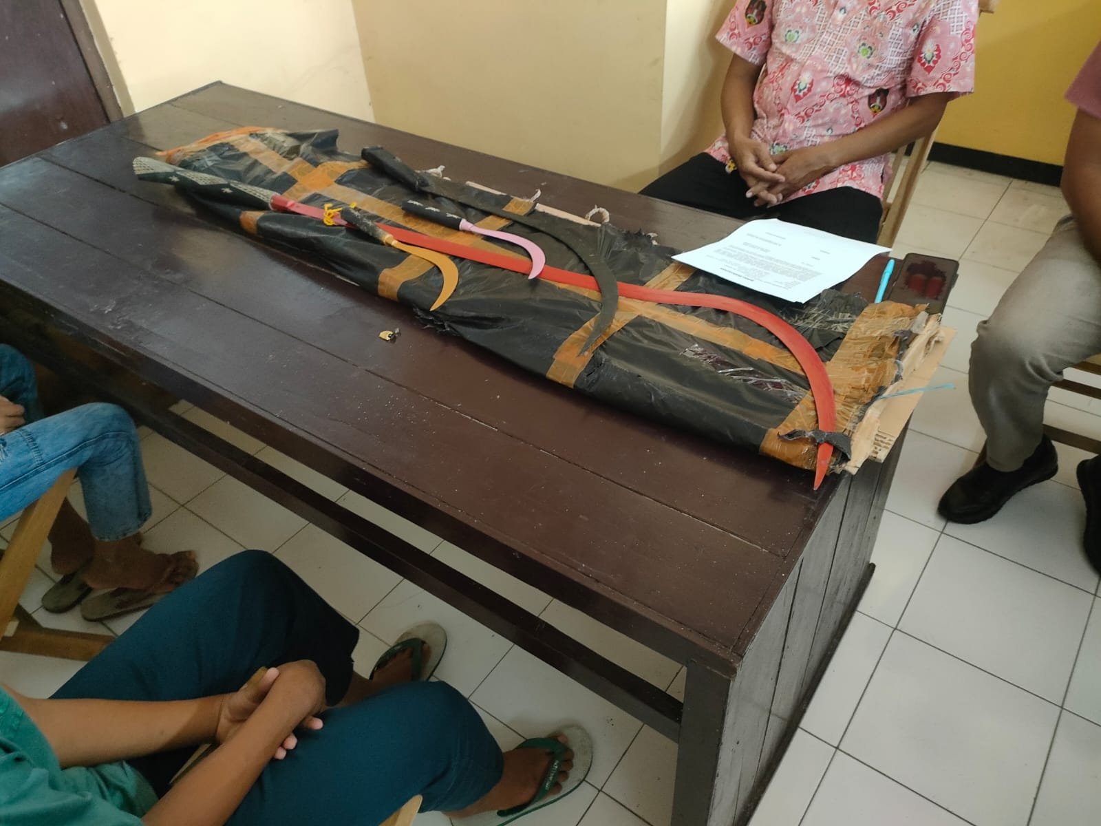 Adapun paket kedua berisi satu parang panjang berukuran sekitar 2 meter dan satu celurit kecil sepanjang kurang lebih 30 sentimeter. Seluruh senjata tajam tersebut kini diamankan di Polsek Undaan.