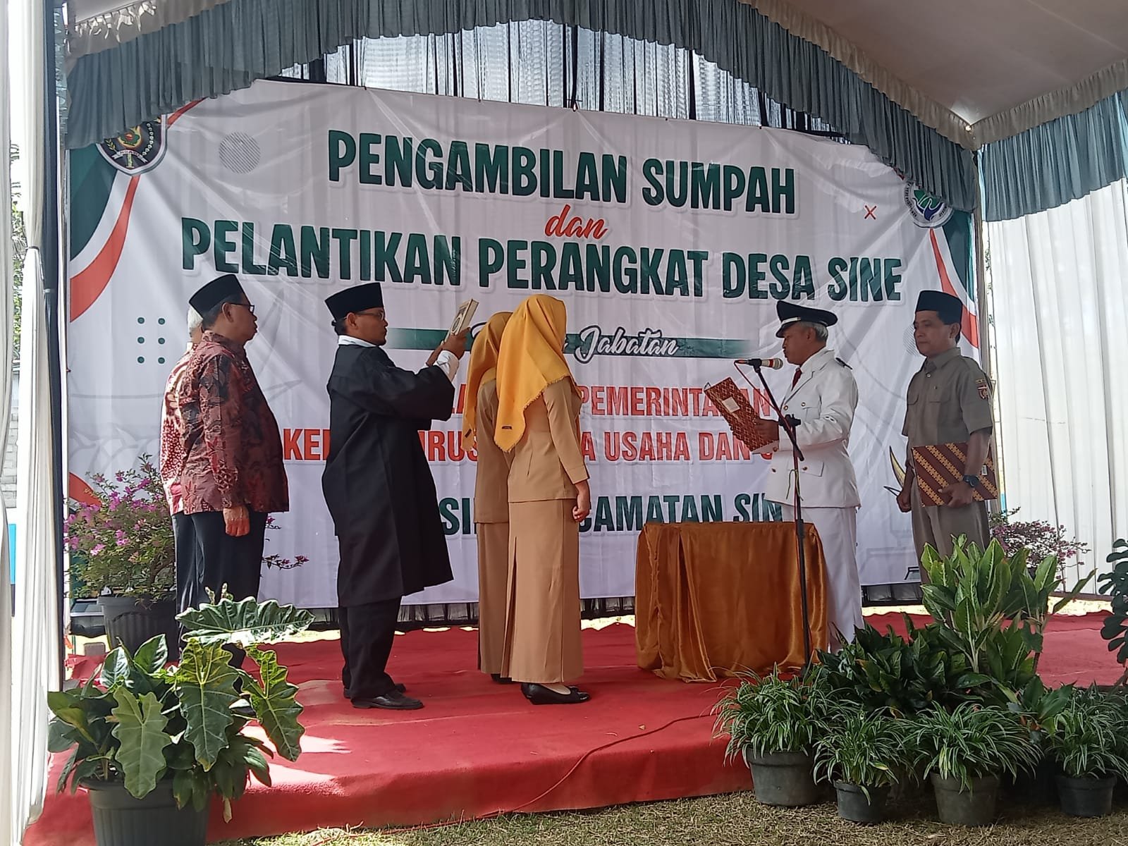 Sementara itu, Camat Sine Agus Dwi Narimo mengingatkan sumpah dan janji jabatan memiliki konsekuensi hukum dan moral. Aparatur desa dituntut bekerja transparan, akuntabel, dan menjunjung etika pemerintahan.