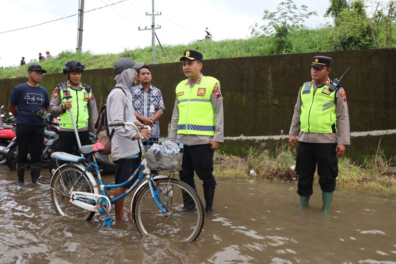 Pengecekan banjir diawali dari Dukuh Goleng, Desa Pasuruan Lor, Kecamatan Jati. Di lokasi tersebut, Kapolres Kudus bersama jajaran memastikan kondisi warga yang masih bertahan di rumah masing-masing serta menyerahkan bantuan sembako sebagai bentuk kepedulian Polri kepada masyarakat terdampak banjir.