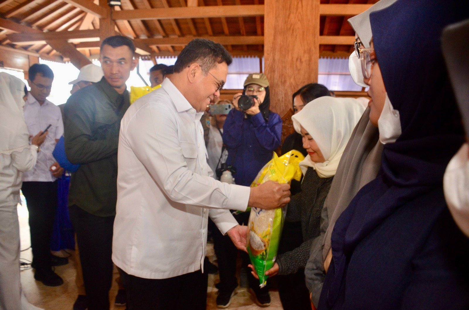 Menteri Perdagangan Budi Santoso turut memantau distribusi beras yang disalurkan kepada warga, guna memastikan rantai pasok di tingkat daerah berjalan tanpa kendala.