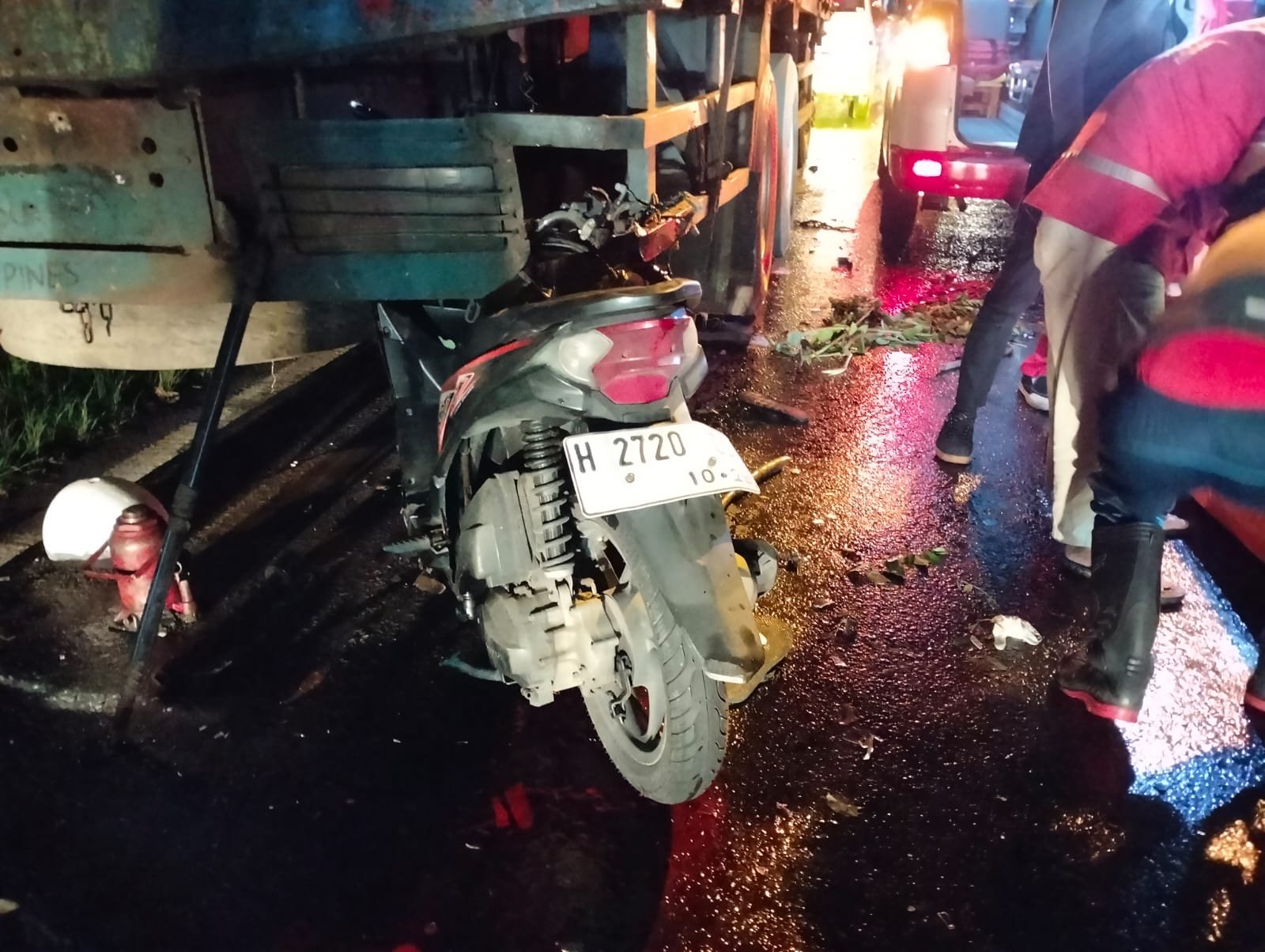 “Sesampainya di lokasi kejadian, di lajur kiri terdapat kendaraan truk tronton yang sedang berhenti di badan jalan, diduga karena kehabisan bahan bakar. Karena jarak sudah terlalu dekat dan tidak sempat menghindar, sepeda motor membentur bagian belakang truk,” jelasnya.