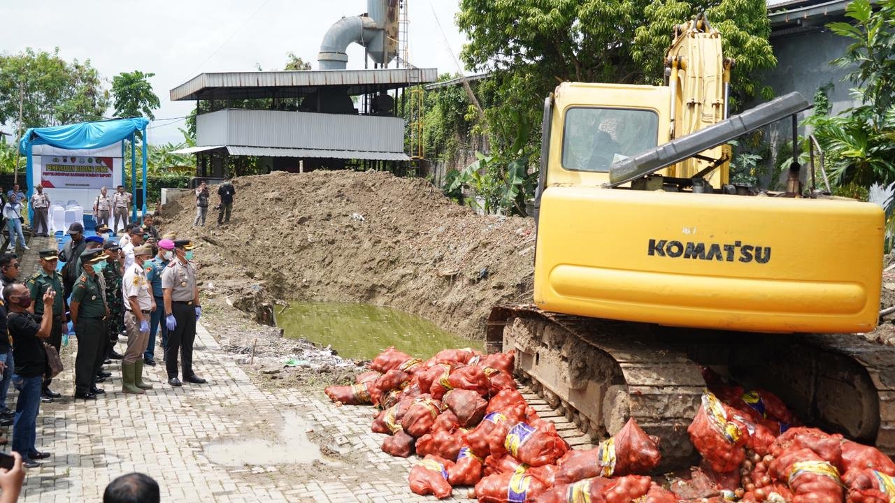 Polisi Musnahkan Ribuan Karung Bawang Bombay Ilegal di Semarang