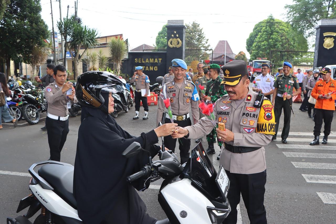 Usai apel, dilakukan pemeriksaan kendaraan dinas pendukung operasi. Personel Polres Salatiga kemudian mensosialisasikan dimulainya Operasi Keselamatan Candi 2026 kepada pengguna jalan di depan Mapolres Salatiga melalui pembagian selebaran serta pemberian bunga dan cokelat kepada pengendara yang tertib berlalu lintas.(*)