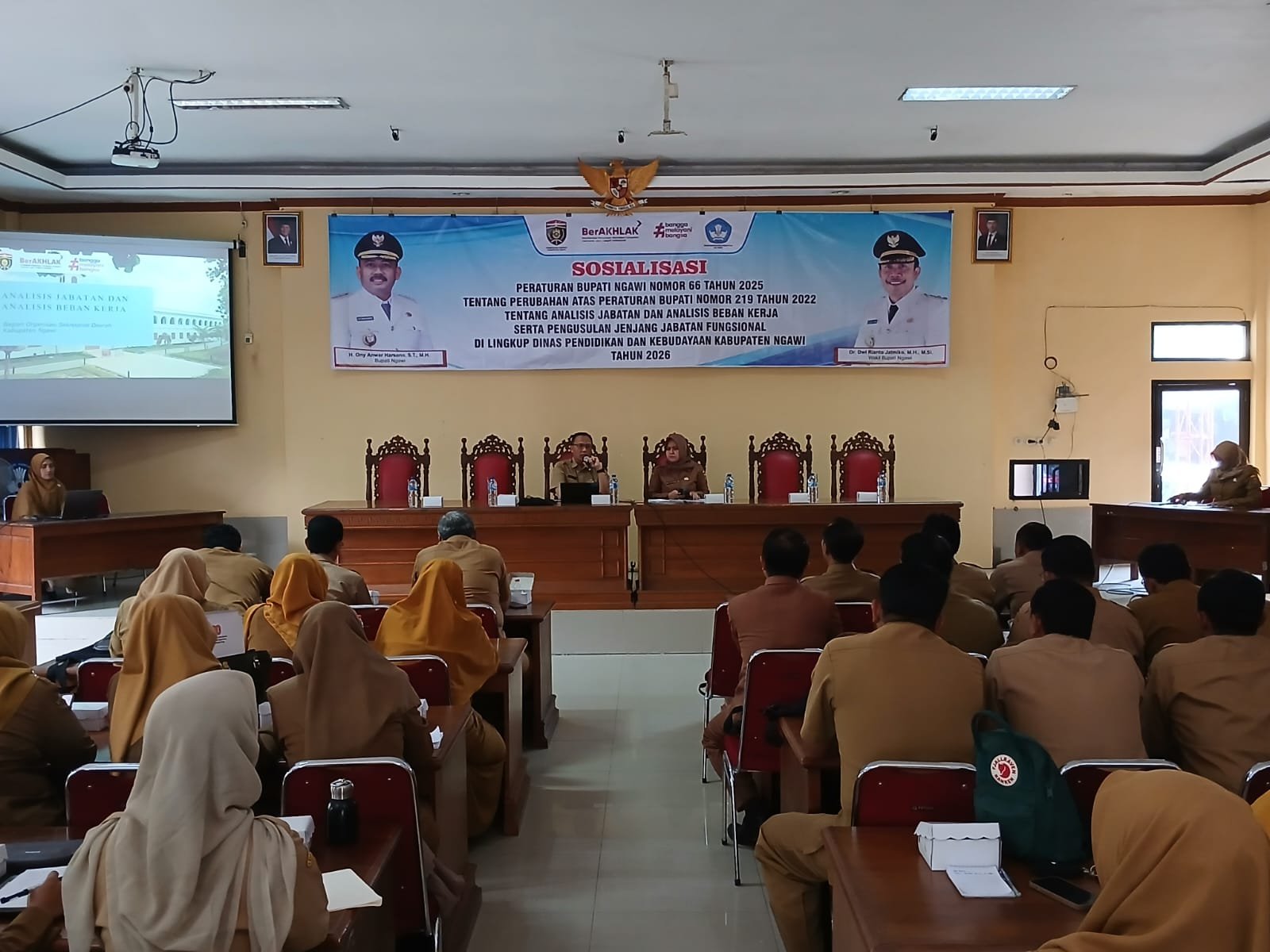 Sosialisasi ini membedah Peraturan Bupati Ngawi Nomor 66 Tahun 2025 sebagai perubahan atas Peraturan Bupati Nomor 219 Tahun 2022. Regulasi tersebut mengatur analisis jabatan dan analisis beban kerja sekaligus menjadi dasar pengusulan jenjang jabatan fungsional ASN.