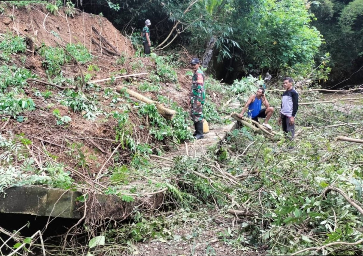 “Pondasinya tergerus air sehingga tidak mampu menahan beban tanah di atasnya. Kerusakan ini berpotensi meluas jika curah hujan tetap tinggi,” ujar Serka Marsudi di lokasi kejadian.