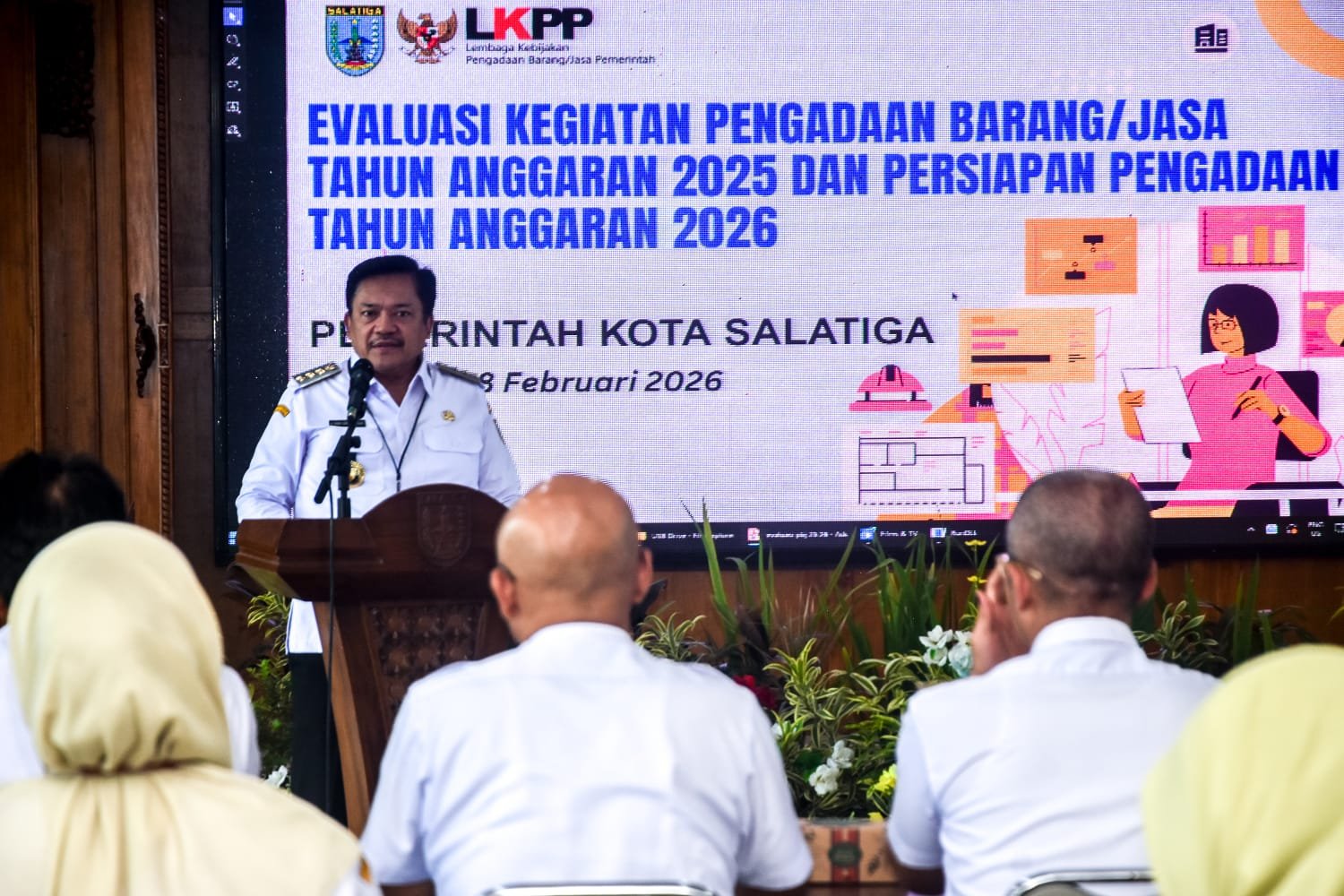 SALATIGA | HARIAN7.COM – Wali Kota Salatiga, Robby Hernawan, mengingatkan jajarannya agar pengadaan barang dan jasa tidak terjebak pada rutinitas administratif. Dalam pembukaan Evaluasi Pengadaan Barang/Jasa TA 2025 dan Persiapan TA 2026, Rabu (18/2/2026), ia menekankan prinsip “empat tepat”: tepat waktu, tepat anggaran, tepat sasaran, dan tepat manfaat.