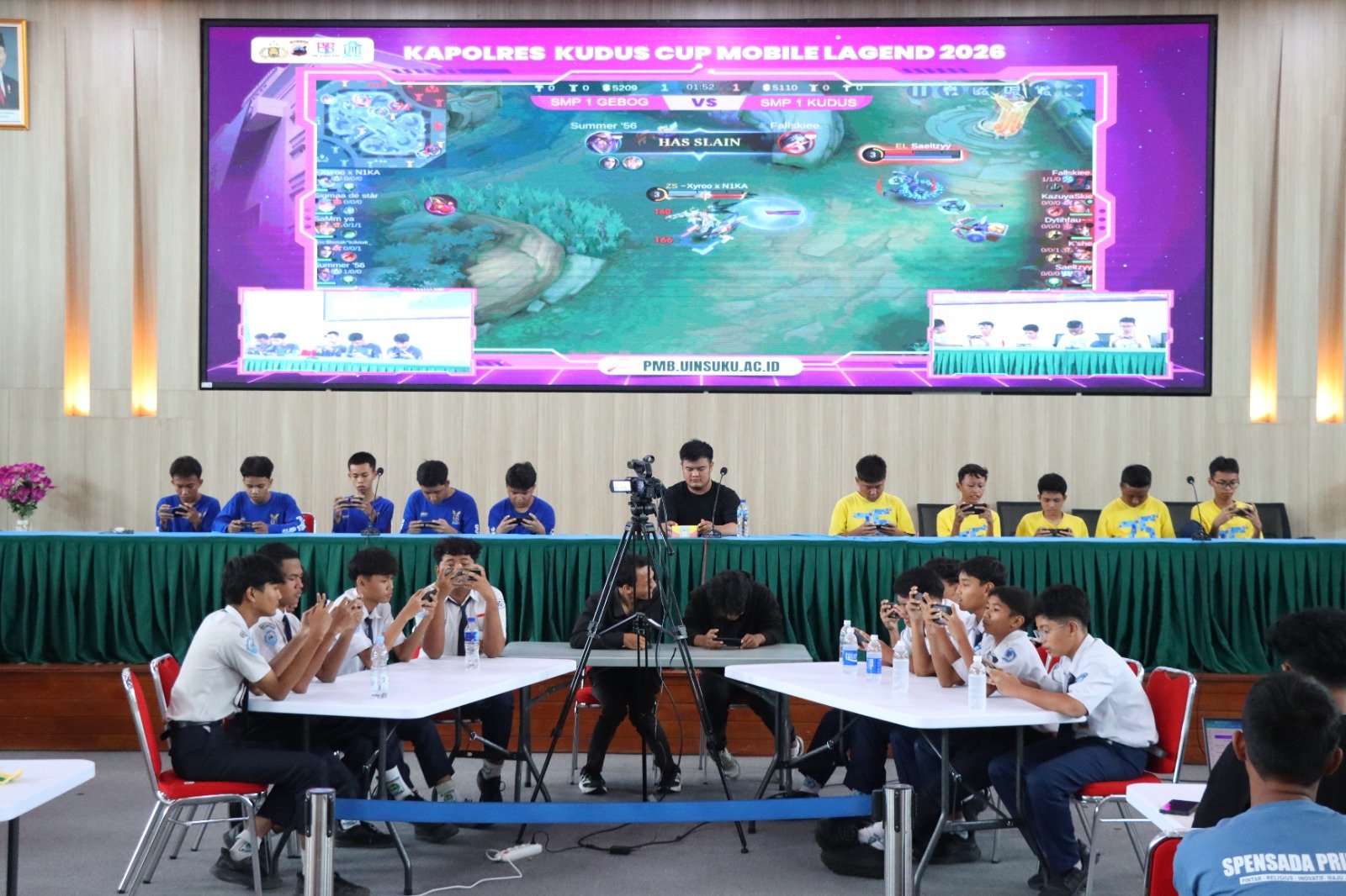 KUDUS | HARIAN7.COM – Riuh tepuk tangan menggema di Gedung Aula Laboratorium Terpadu UIN Sunan Kudus, Kamis (12/2/2026). Sebanyak 64 tim pelajar dari berbagai sekolah di Kabupaten Kudus bertarung dalam Kapolres Cup Mobile Legends 2026 yang digelar Polres Kudus bersama FIS E-Sports, komunitas game online setempat.