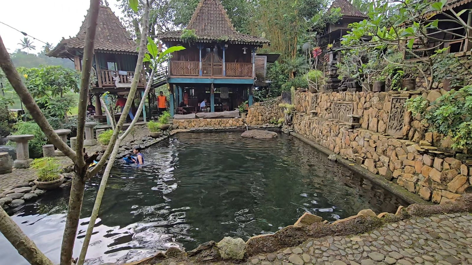 Konsepnya sederhana, tapi justru di situlah daya pikatnya: kembali ke sumber. Kolam pemandian dialiri langsung dari mata air alami yang tak tercemar. “Jadi secara umum, di sini, karena ada sumber air, jadi kebetulan kolam renang kita ini spesialnya, berenang dengan ikan dewa,” katanya.