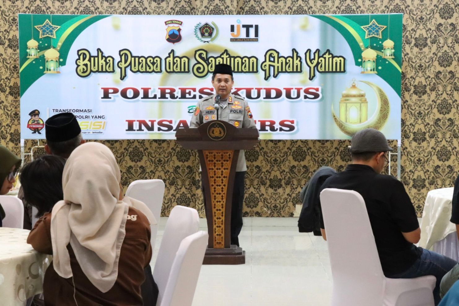 Sejumlah pejabat utama Polres Kudus hadir bersama perwakilan Persatuan Wartawan Indonesia (PWI) Kabupaten Kudus, Ikatan Jurnalis Televisi Indonesia (IJTI) Kabupaten Kudus, serta pegiat media sosial setempat. Sebanyak 15 anak yatim dari Yayasan Budi Luhur menerima santunan dalam kegiatan tersebut.