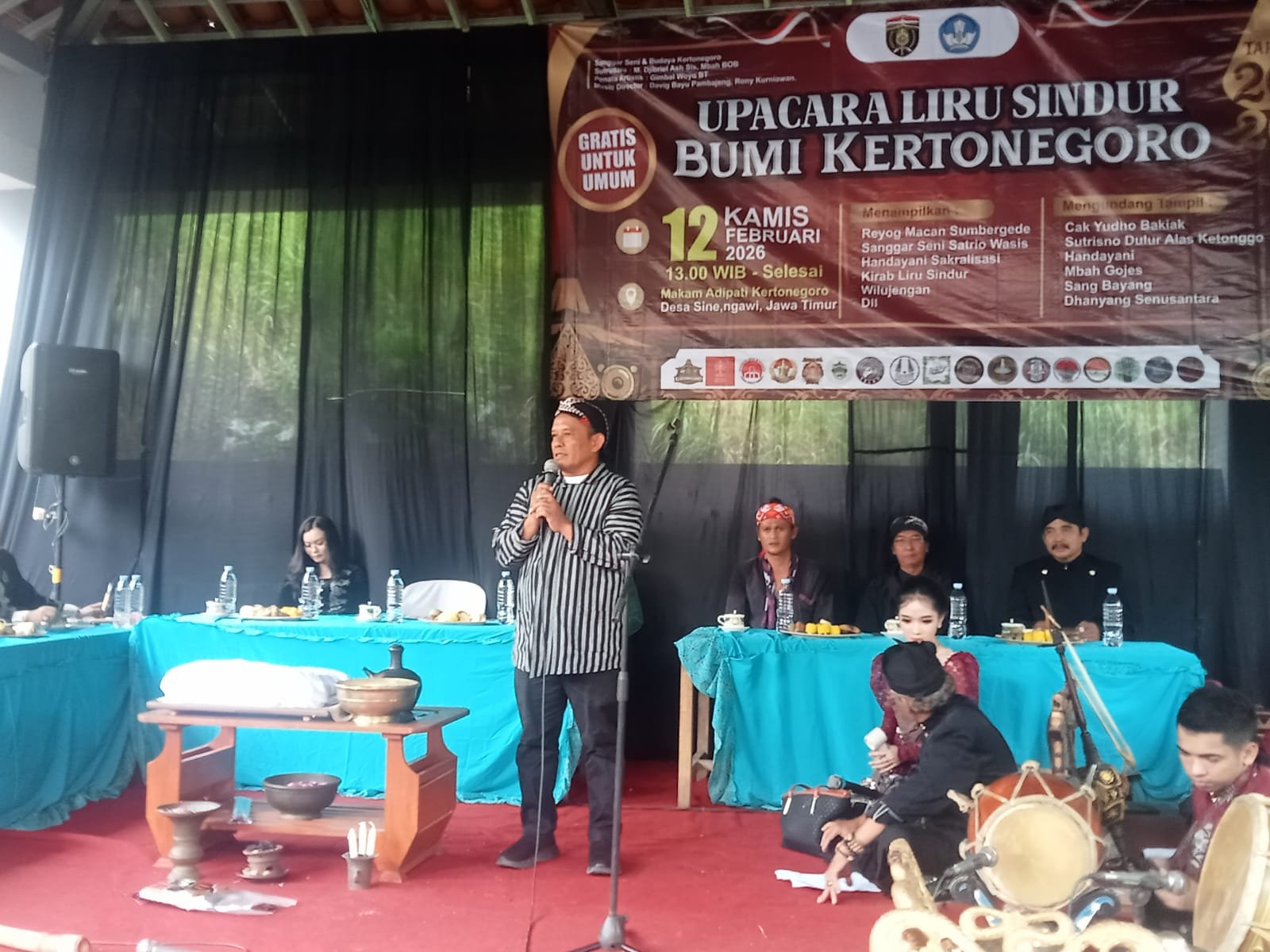 NGAWI | HARIAN7.COM – Asap dupa mengepul pelan di antara pepohonan Gunung Sarehan, Desa Sine, Kecamatan Sine, Kabupaten Ngawi, Kamis Kliwon, 12 Februari 2026. Di kompleks Makam Kanjeng Raden Adipati Kertonegoro, bupati pertama Ngawi, ratusan warga berkumpul mengikuti prosesi Ritual Liru Sindur, sebuah upacara yang sarat makna, khidmat, dan sakral.
