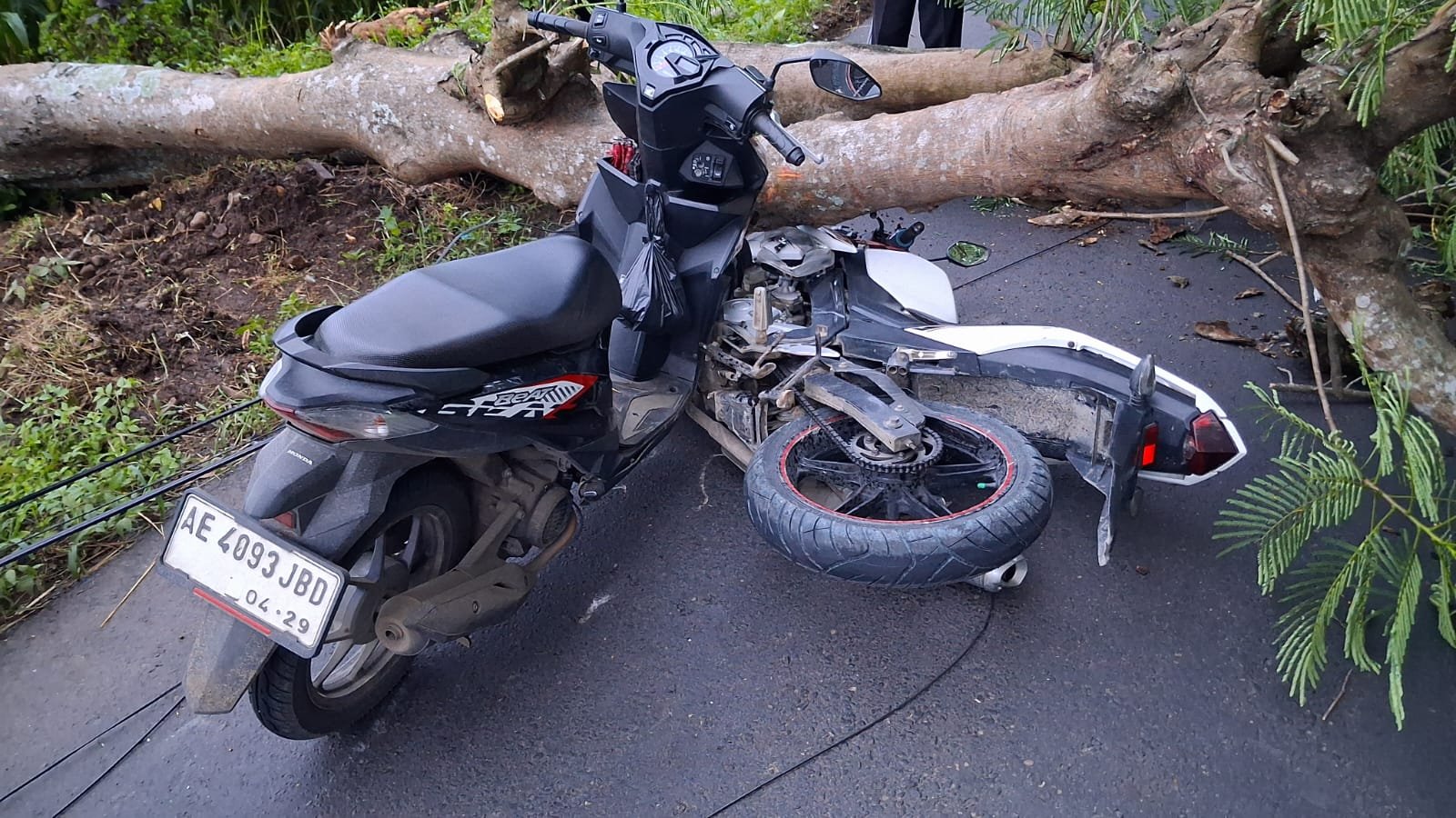 Subuh Gelap di Sine, Motor Tanpa Pelat Hantam Pohon Tumbang