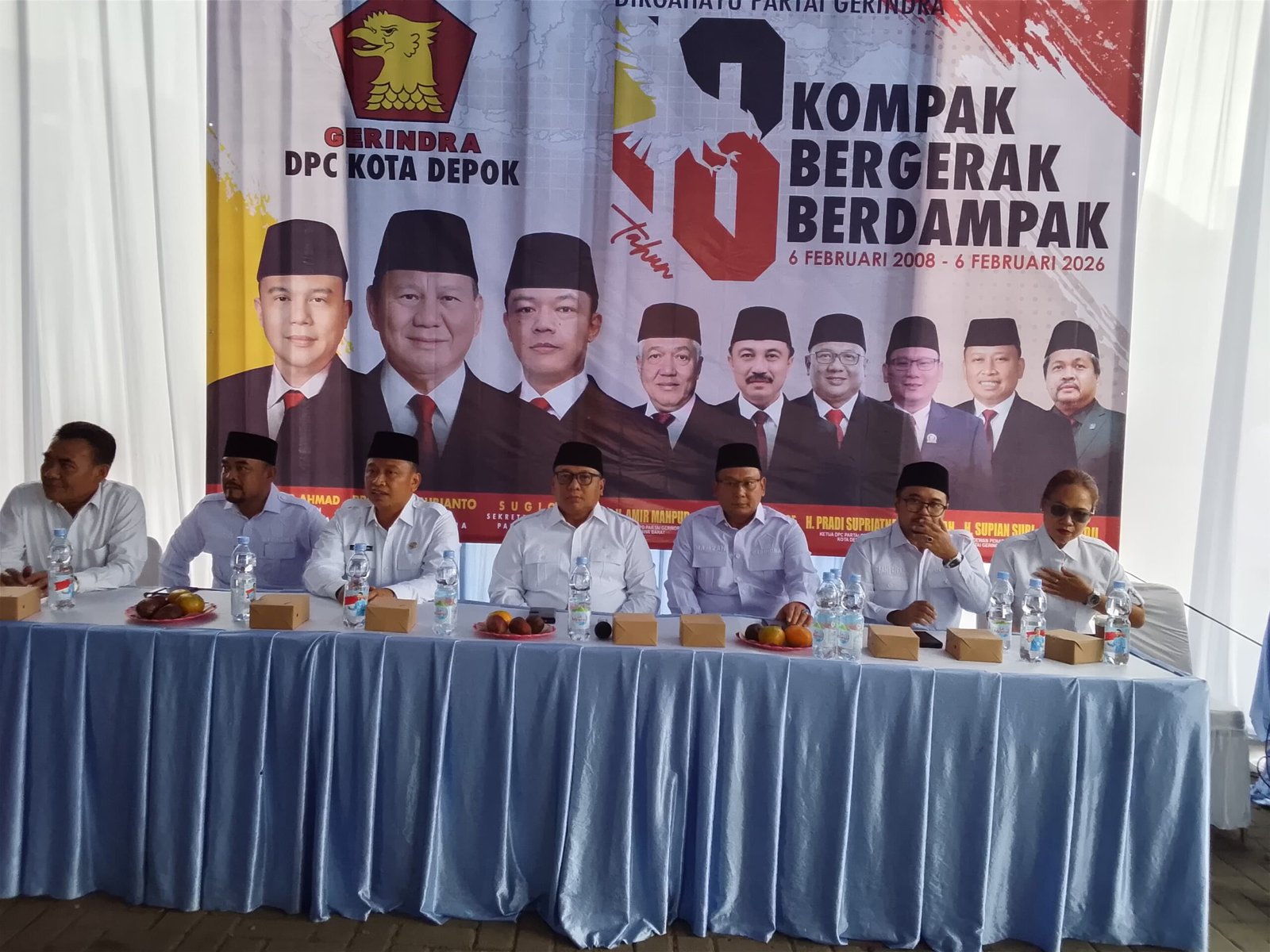 DEPOK | HARIAN7.COM – Dewan Pimpinan Cabang (DPC) Partai Gerindra Kota Depok menggelar peringatan Hari Ulang Tahun (HUT) ke-18 Partai Gerindra dengan sederhana. Kegiatan tersebut mengusung tema Kompak, Bergerak, Berdampak dan dilaksanakan dalam waktu satu hari.