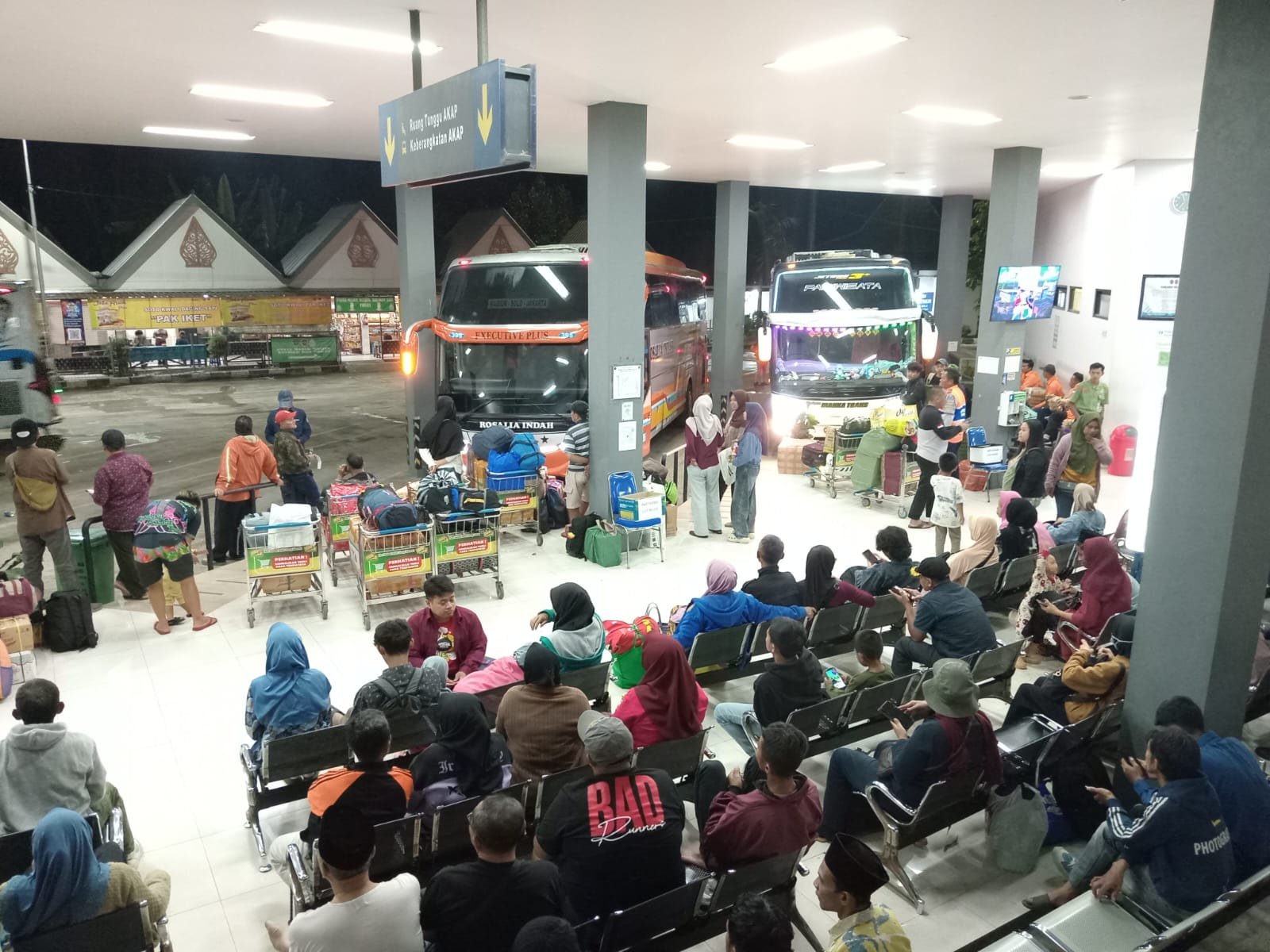 Kepala Terminal Tipe A Tingkir Salatiga, Vicky Chandra Yanuar, menjelaskan puncak arus mudik terjadi pada H-3 Lebaran atau Rabu (18/3/2026). Pada hari tersebut, tercatat 343 bus AKAP dan AKDP keluar-masuk terminal, dengan total pergerakan 1.049 penumpang.