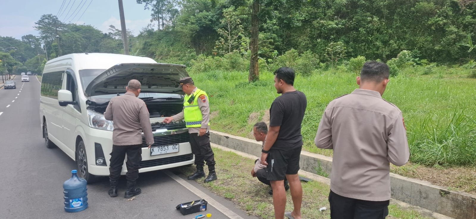Dengan memanfaatkan air mineral yang tersedia di kendaraan dinas, petugas mengisi radiator hingga kembali normal. Tak lama kemudian, mesin dapat dinyalakan dan kendaraan kembali melanjutkan perjalanan.