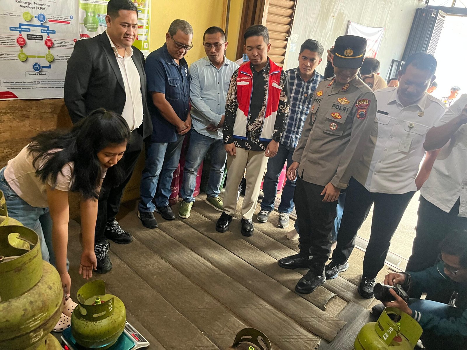 Rombongan meninjau Pangkalan Umanah di Desa Demaan, Kecamatan Kudus Kota. Dari hasil pengecekan, stok LPG dinyatakan aman dengan adanya tambahan 20 tabung dari alokasi awal.